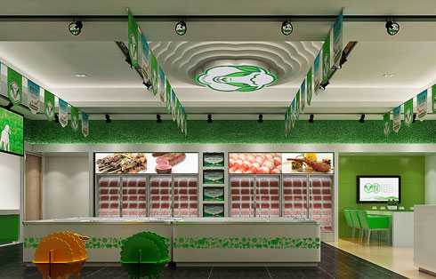 上海公裝公司案例:本案生鮮超市后現(xiàn)代工業(yè)風(fēng),賣(mài)場(chǎng)個(gè)性化設(shè)計(jì),點(diǎn)睛綠可讓整個(gè)空間鮮活起來(lái)。